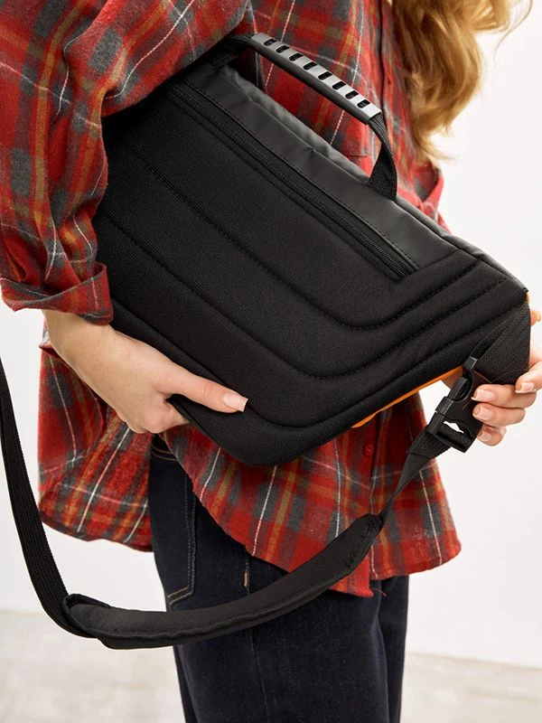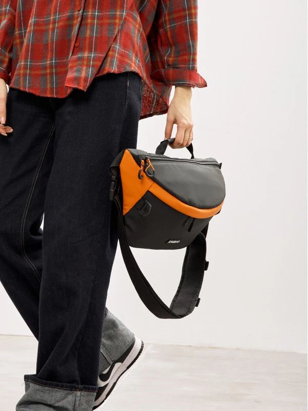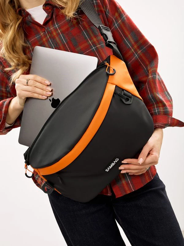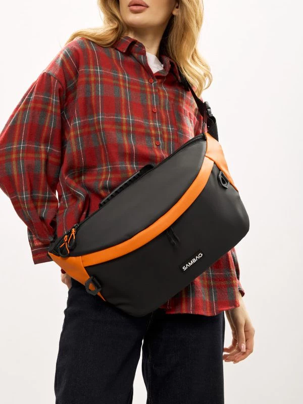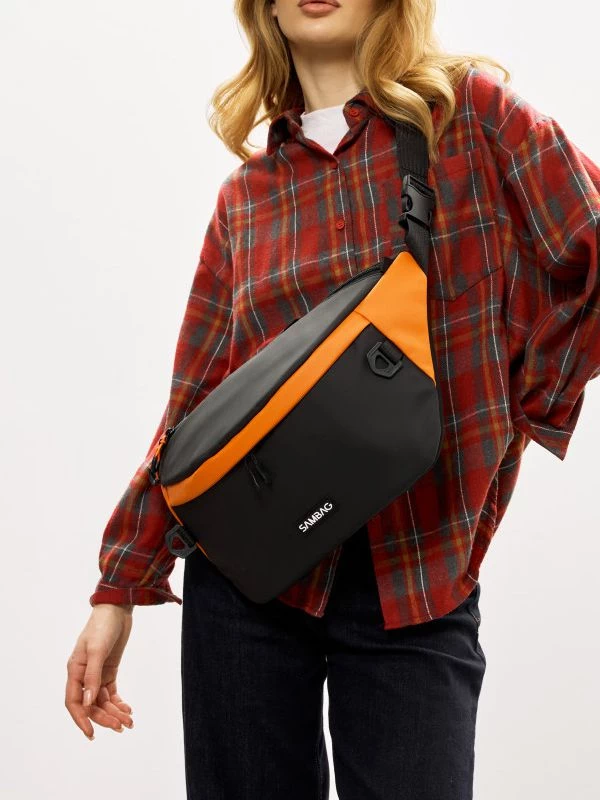 Захоплююча жіноча сумка у помаранчево-чорному виконанні на всі випадки життя.