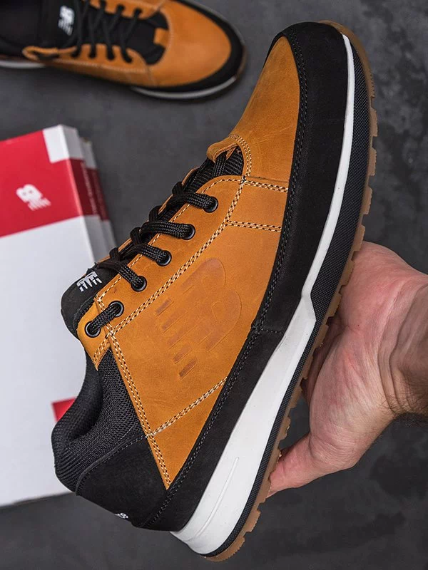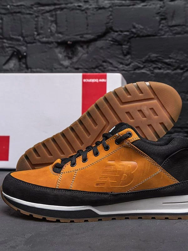 Чудові чоловічі кросівки рудого кольору з чорними вставками на всі випадки життя.