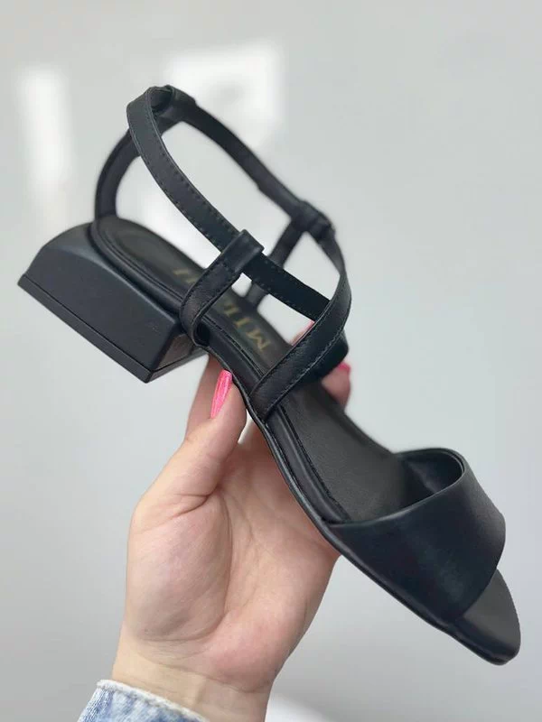Шкіряні босоніжки у чорному виконанні на низькому ході