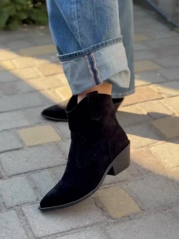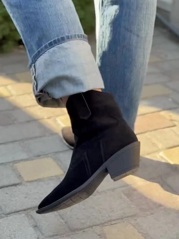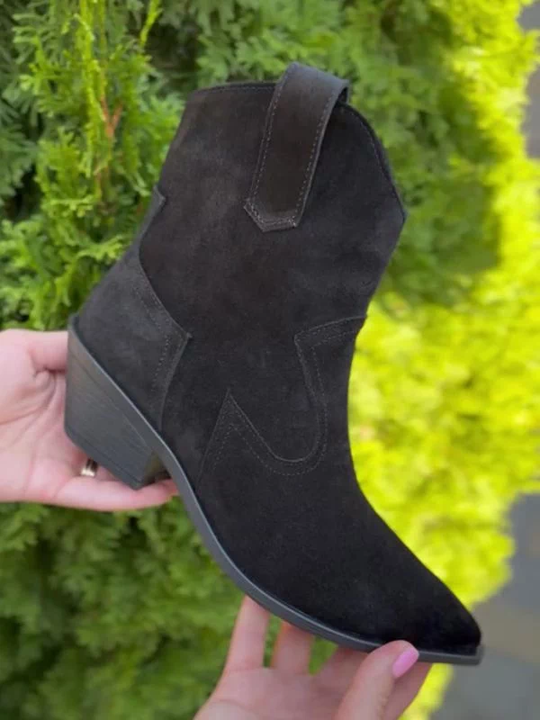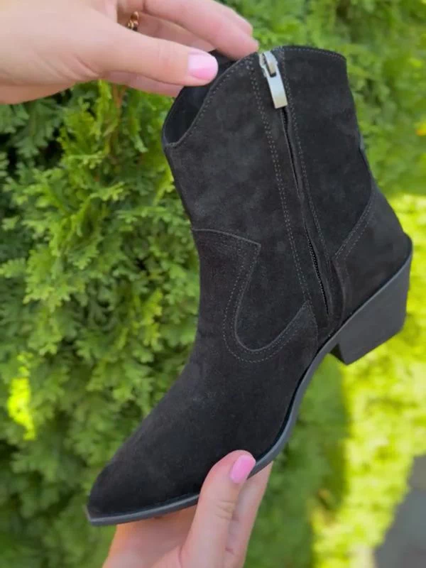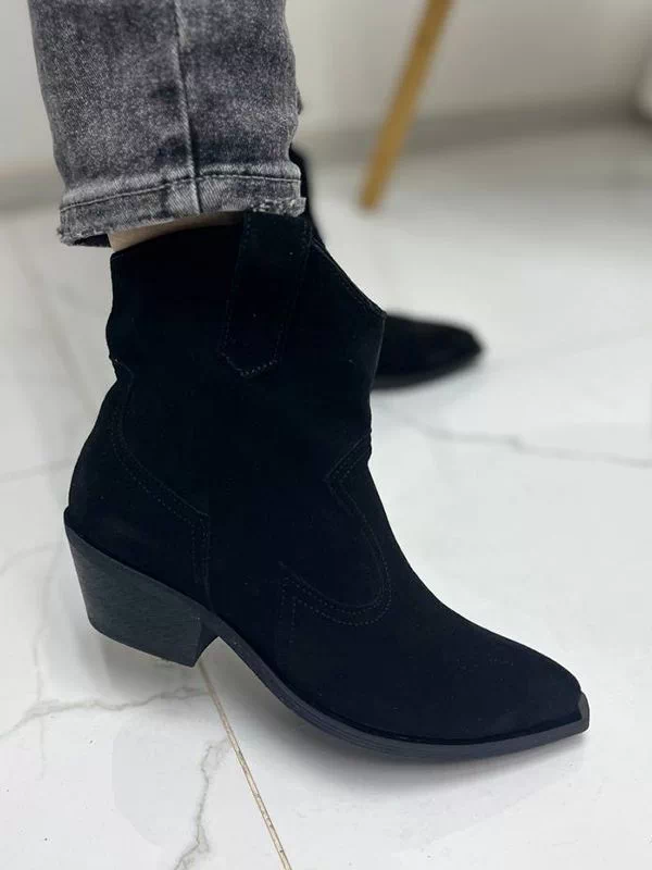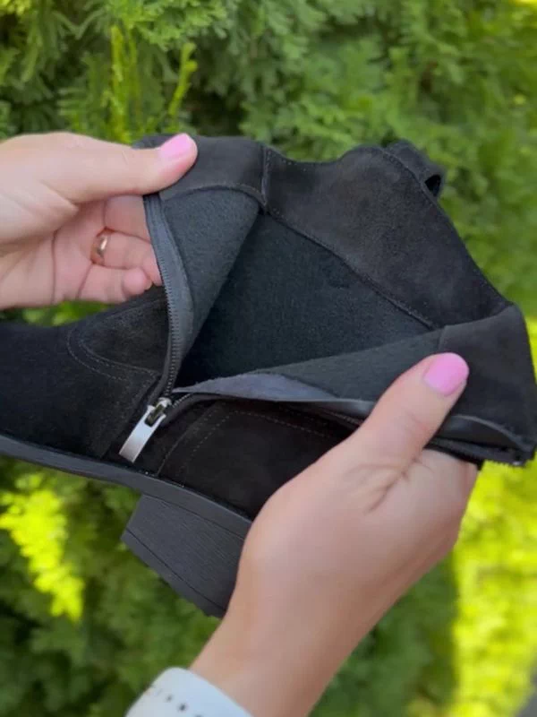 Be the first to review “Чорні замшеві осінні ботильйони-казаки на байці”