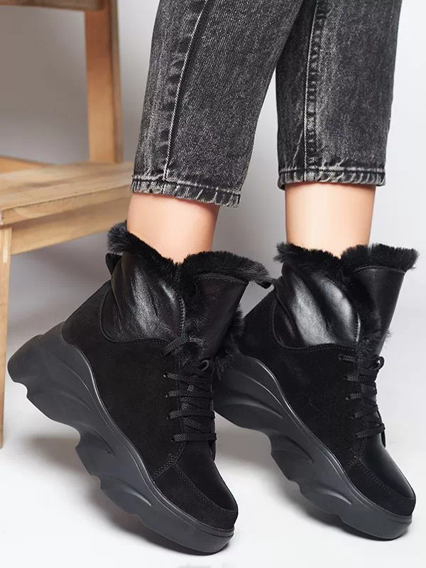 Елегантні зимові жіночі черевики у чорному виконанні на всі випадки життя.