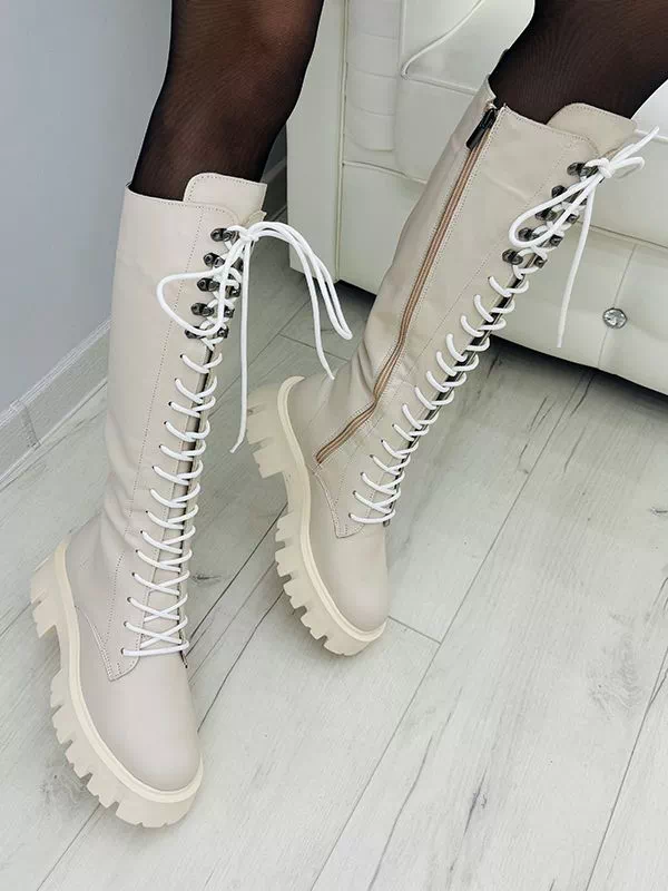 Потужні осінні жіночі черевики бежевого кольору на будь-які випадки життя.