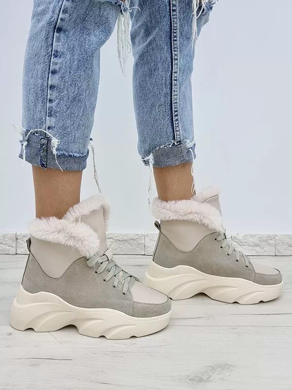 Be the first to review “Світло-бежеві зимові черевики з натуральної замші та шкіри”