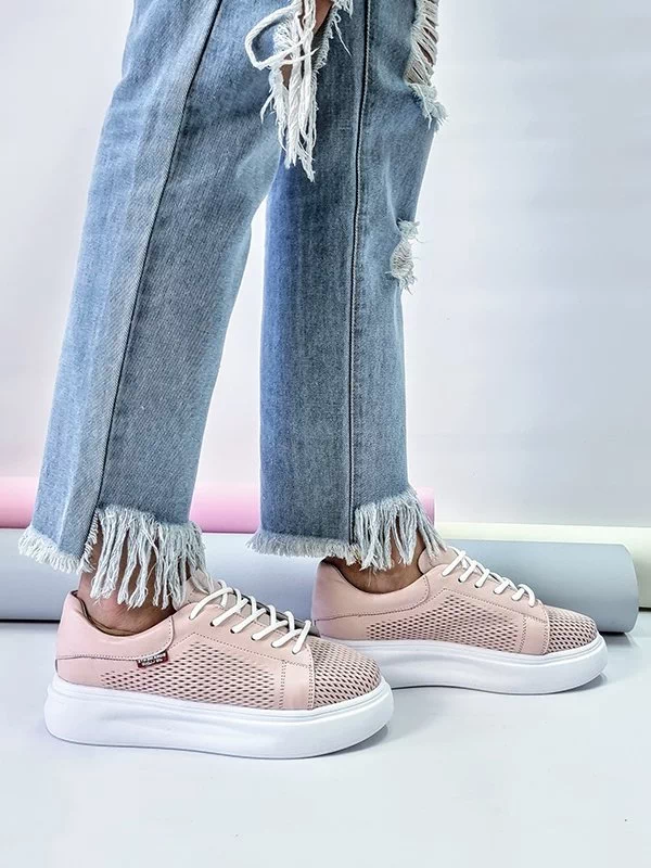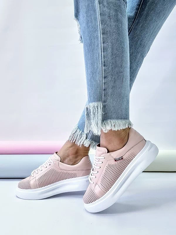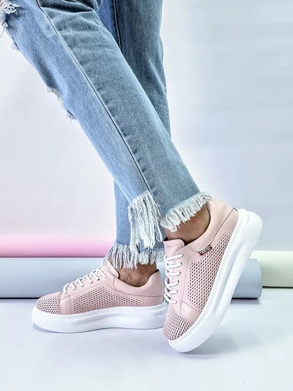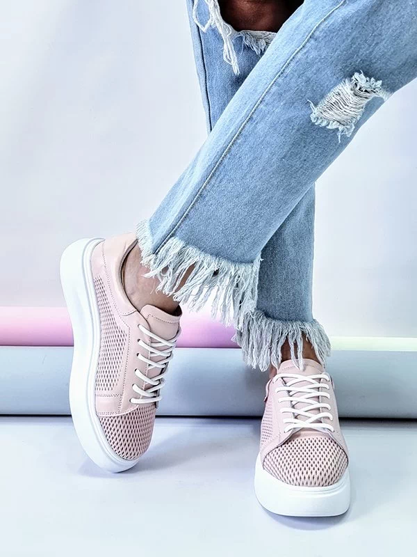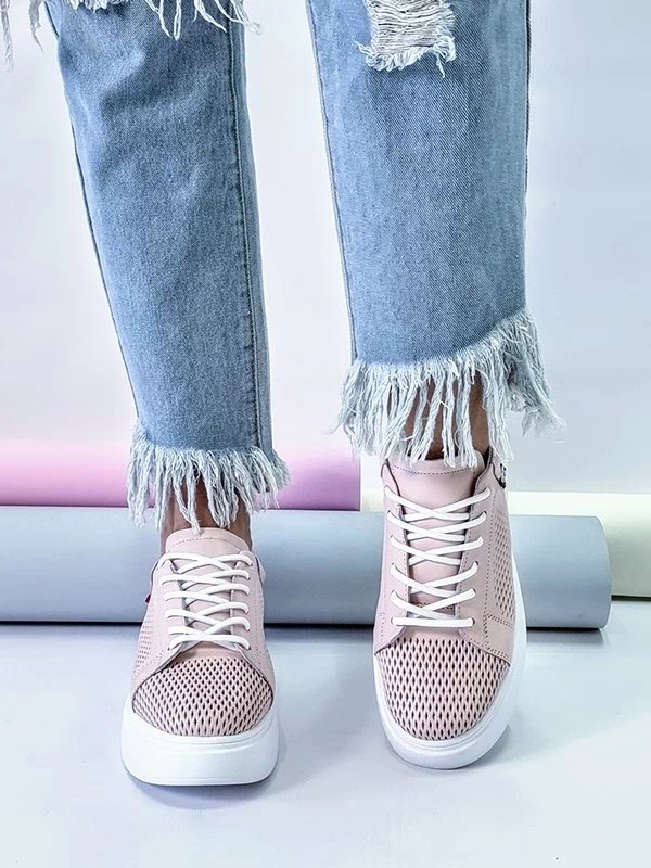 Літні шкіряні кеди у відтінку «пудра» на товстій підошві
