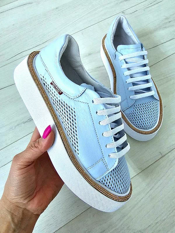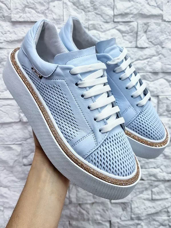 Элегантные летние женские кеды в голубом исполнении на все случаи жизни.