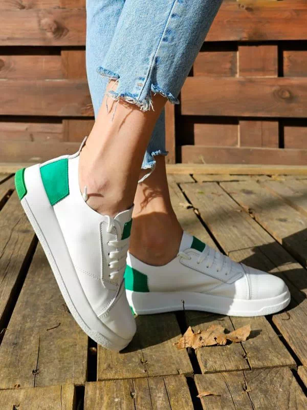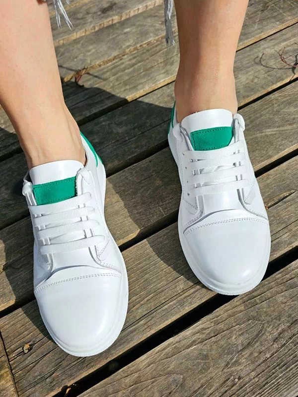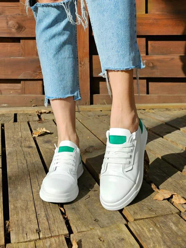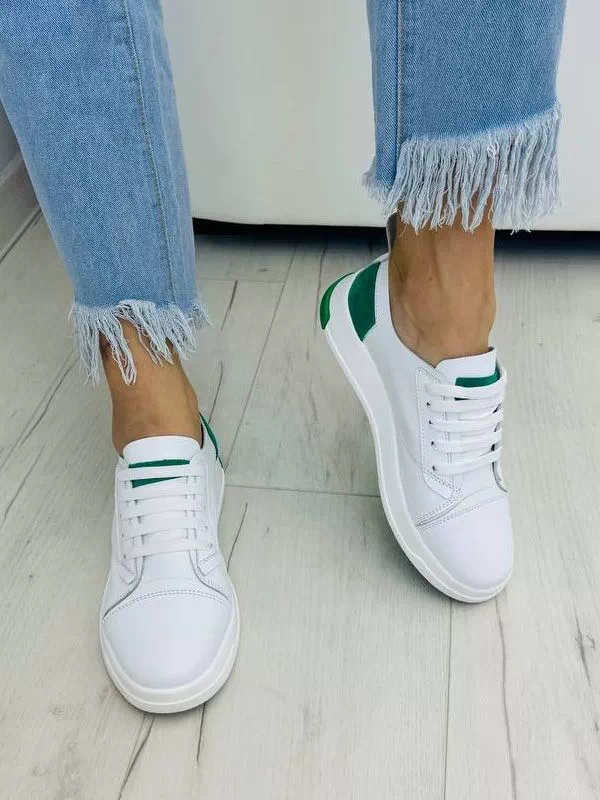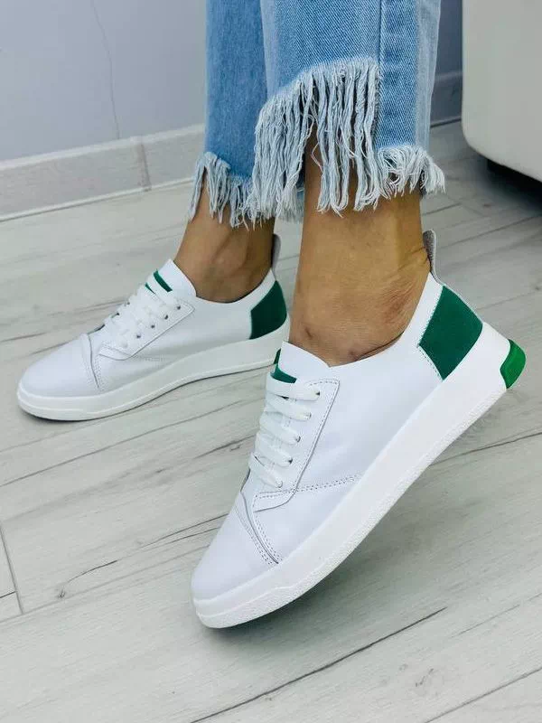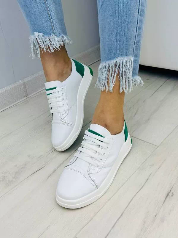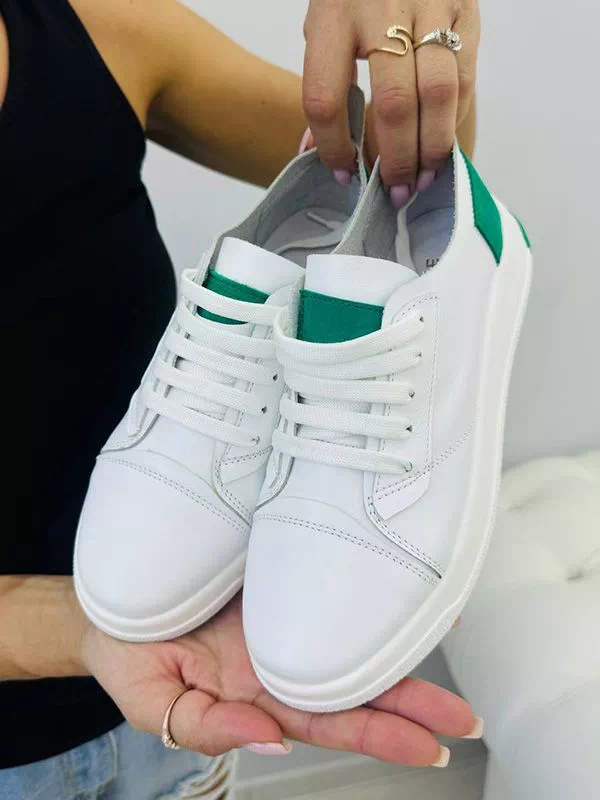 Be the first to review “Білі шкіряні кеди з зеленими замшевими вставками”