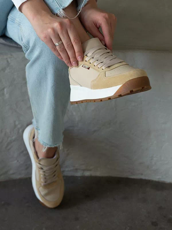 Шикарні жіночі кросівки у світло-бежевому виконанні на всі випадки життя.