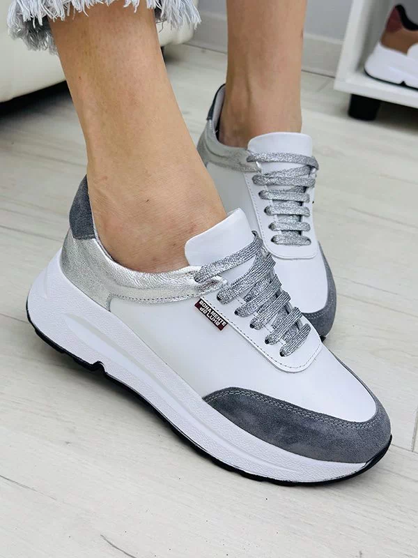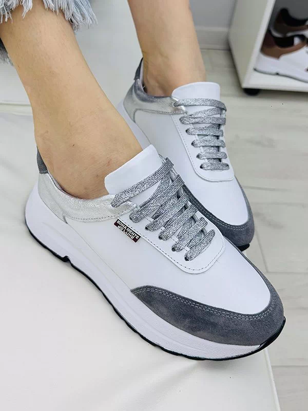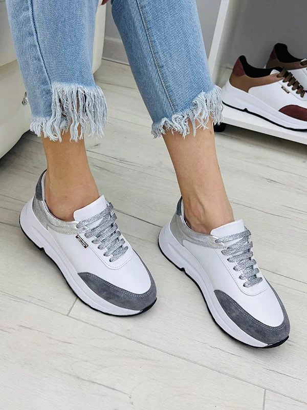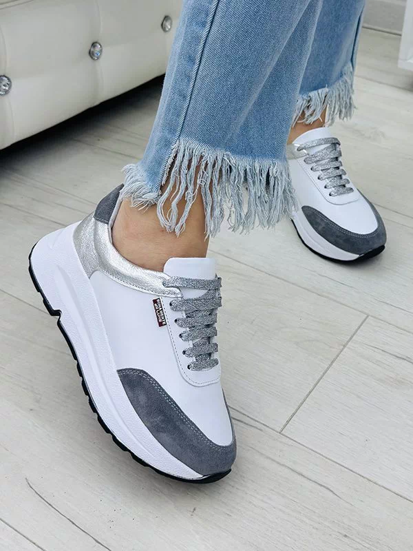 Приголомшуючі жіночі кросівки у сіро-білому виконанні на всі випадки життя.