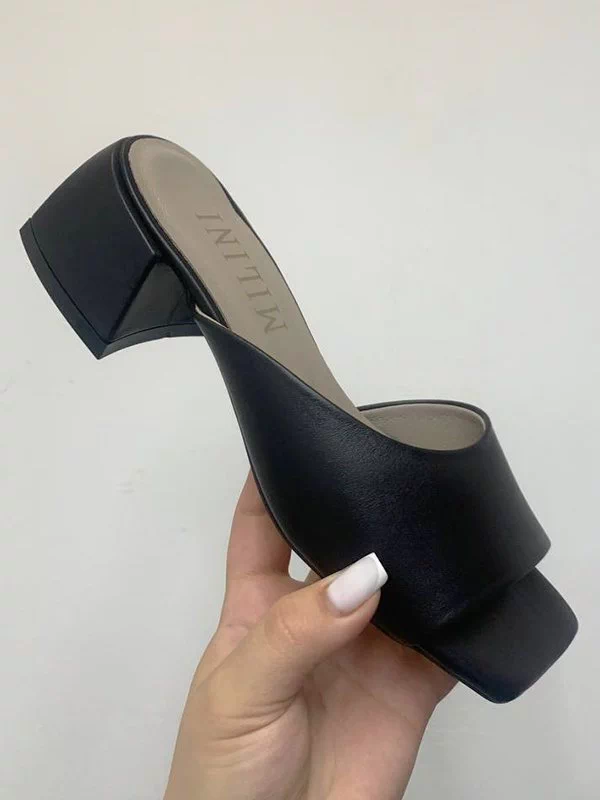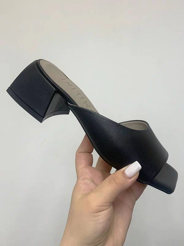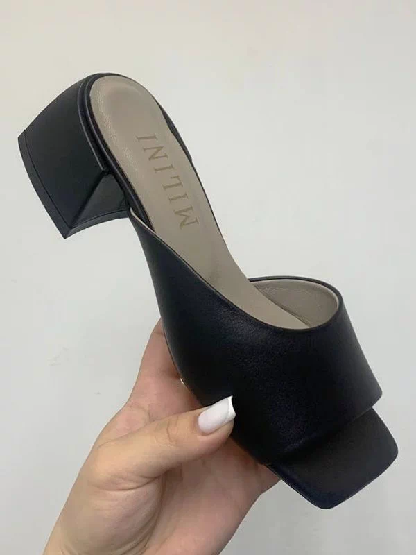 Мюлі чорного кольору з натуральної шкіри