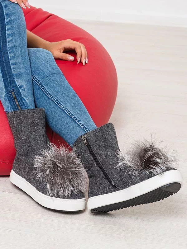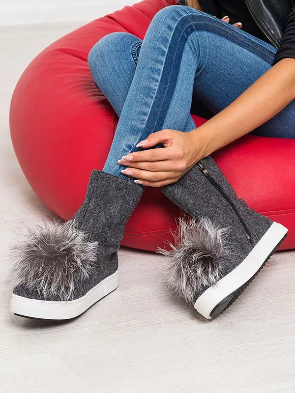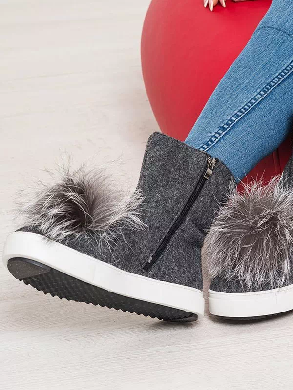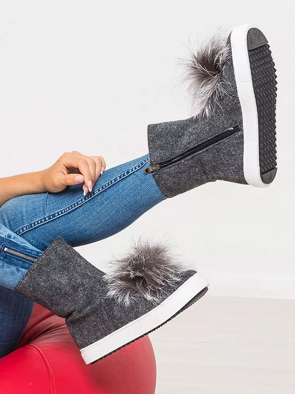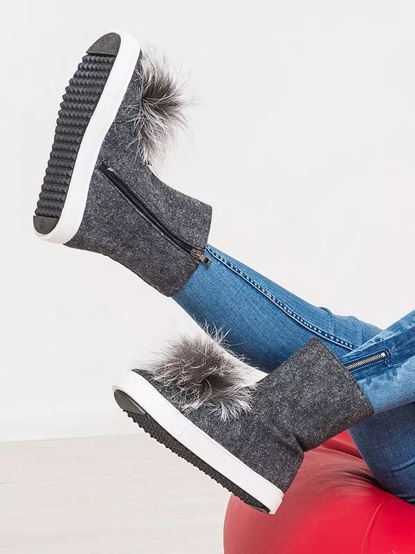 Сірі напівчобітки з валяної вовни та хутряними помпонами
